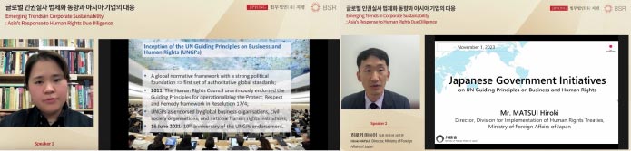 ウェビナーでは、BSRのプレジデント兼CEOであるAron CramerおよびJipyong LLCのマネジング・パートナーであるSung Taek Lim氏より開会の挨拶があり、人権尊重におけるビジネスの重要な役割を強調しました。特に、ステークホルダーのビジネスと人権に関する期待の高まりへの対応として、人権デュー・デリジェンスを実施することの重要性に言及しました。