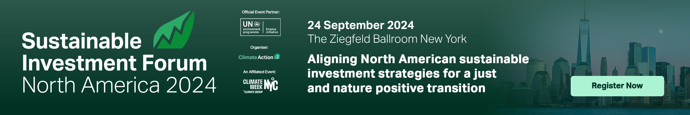 Join us at the 9th annual Sustainable Investment Forum North America in partnership with UNEP FI taking place on September 24th at the Ziegfeld Ballroom during UN General Assembly (UNGA) and Climate Week NYC.
