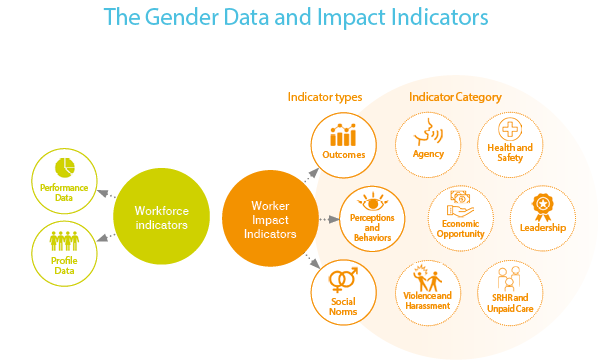- Worker impact indicators support the evaluation of worker outcomes, perceptions, and behaviors as well as social norms that may influence and contribute to reproducing structural unequal outcomes for women. Assessing women’s empowerment holistically, these indicators spread across six categories representing key enabling dimensions deemed essential for women to thrive in the workplace, such as agency, health and safety, and freedom from violence and harassment.