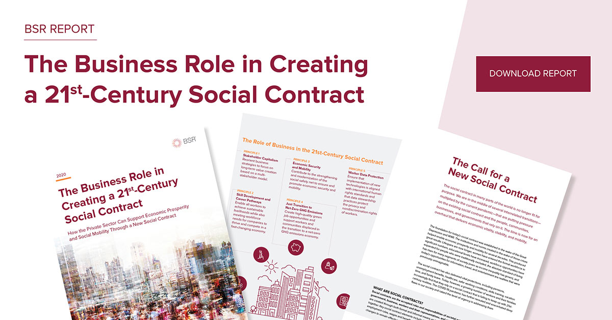 We are at a hinge point in history where transformation is both possible and necessary. As we enter the decisive decade of the 2020s and aim to deliver on the Sustainable Development Goals and the Paris Agreement, it is imperative that business use its voice to act, enable, and influence, collaborating with governments, workers and their representatives, and civil society organizations to modernize the social contract. This paper outlines a framework for doing so.